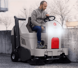 Comac COMAC CS 800B - аккумуляторная подметальная машина, предназначенная для уборки средних и больших площадей (до 20000 кв.м.). Машина оснащена центральной щеткой для сбора мусора, а также боковыми щетками для очистки краев и углов. Вакуумная система с эффективным фильтром, оснащенным электрическим встряхивателем, обеспечивает эффективное улавливание пыли. Объемный бункер для пыли/мусора обеспечивает длительную работу без технологических перерывов. Механический рычаг позволяет легко и быстро опустошить бункер. LED фары обеспечивают отличную видимость для оператора, а также делают машину очень заметной.