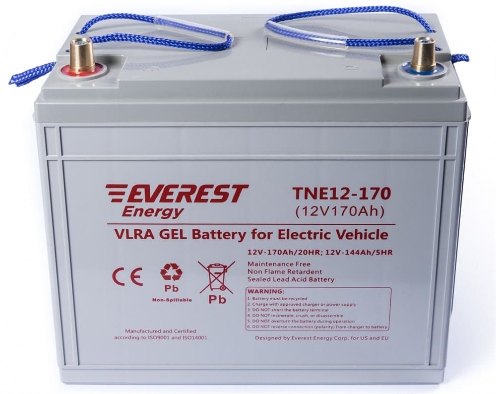 Everest TNE 12-170 - тяговый аккумулятор. Разработан специально для электрических транспортных средств, в том числе электрокаров, транспортных средств с электродвигателями, гольф-каров, погрузчиков, поломоечных машин и подметальных машин, а также других устройств, работающих от источника электропитания постоянного тока. Everest Energy серии TNE пожаро- и взыровобезопасны и могут эксплуатироваться в общественных местах в.т.ч с повышенными требованиями к окружающей среде и нормам безопасности. TNE - серия АКБ соответствующая 600+ циклам разряда по DIN/EN 60254-1, IEC 254-1, при DOD70 (глубине разряда до 70% от емкости АКБ). При ежедневной эксплуатации 600 циклов позволит использовать поломоечную машину до двух лет.