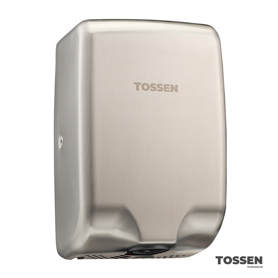 TOSSEN HS 1010 M - чрезвычайно компактная высокоскоростная сушилка. Производительный и очень экономичный мотор обеспечивает высокую скорость потока воздуха, при минимальном потреблении энергии. Сушилка оснащается системой бесконтактного включения и ультрафиолетовым обеззараживателем воздуха, что обеспечивает высокий уровень гигиеничности. Данный аппарат может подавать как холодный, так и горячий воздух, а также имеет регулировку чувствительности инфракрасного датчика включения. Корпус из высококачественной нержавеющей стали со специальным покрытием, препятствующим появлению на корпусе следов от пальцев, обеспечивает не только долговечность, но и безупречный внешний вид. А также существенно облегчает уход за поверхностью сушилки.