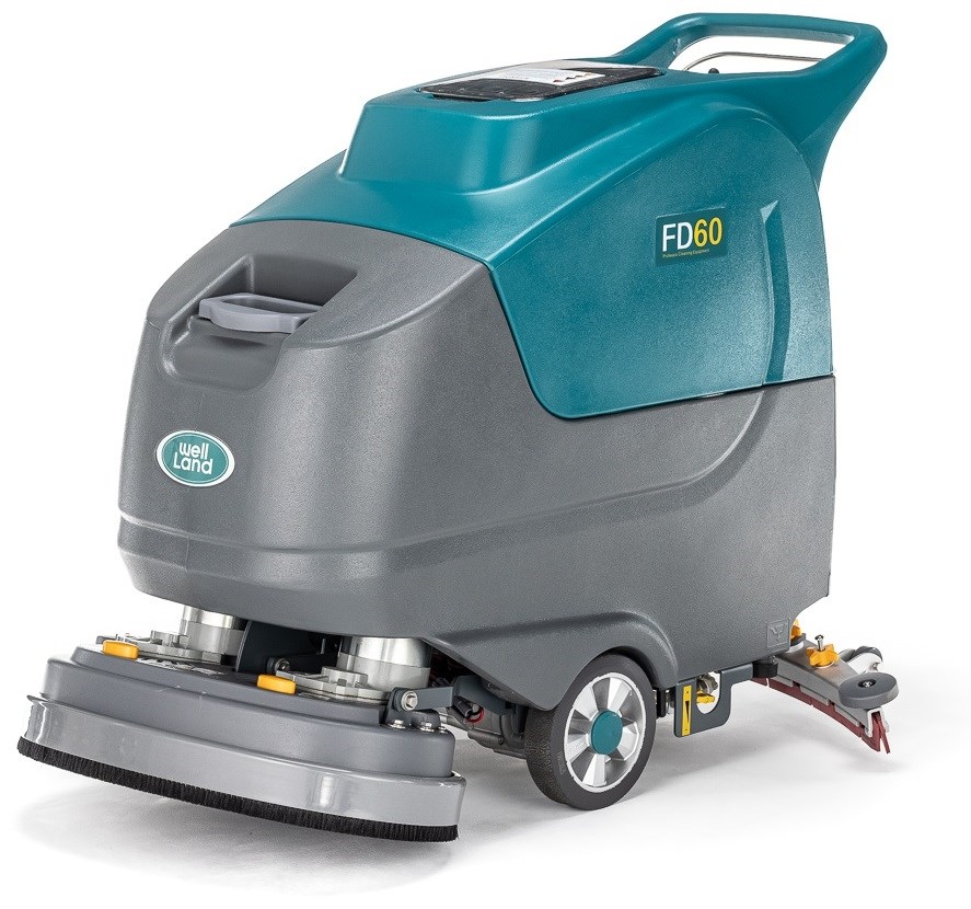 Wellland FD60P — аккумуляторная поломоечная машина. Благодаря двум щеткам, машина имеет очень значительную рабочую ширину, что позволяет производить уборку средних площадей за короткое время. При высокой производительности, модель обладает высокой манёвренностью, имеет компактный и эргономичный дизайн. Привод хода и интуитивно понятное управление машиной делают уборку простой и удобной.